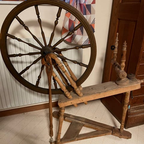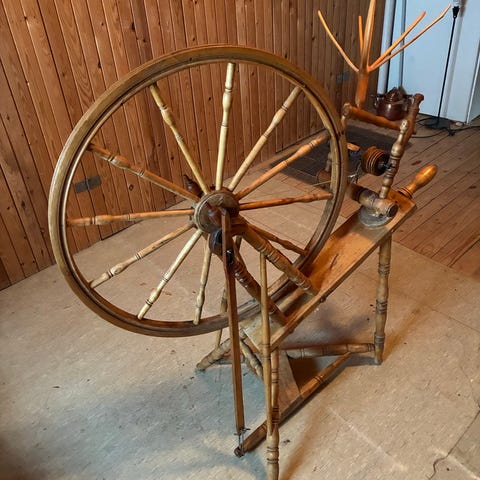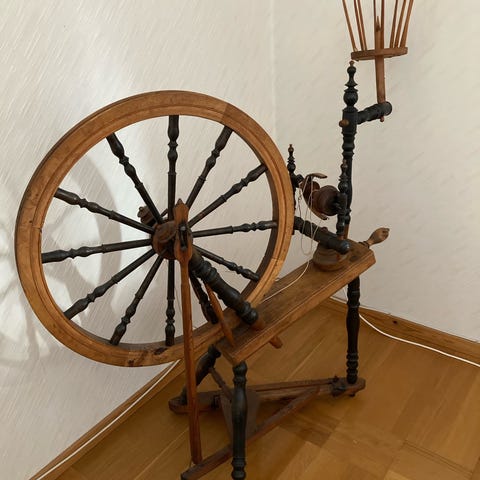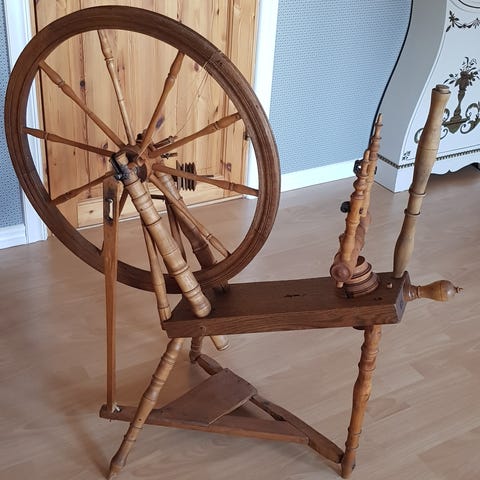 Spinnrock, garnvindare och nån liknande grej, naturligt träutförande. Spinnrocken har traditionell design Produkterna är lämpliga för handarbete och garnhantering. Säljes alla tre ihop för 600kr eller 250kr styck