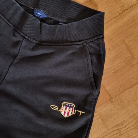 Mörka svarta mjukisbyxor från BASIC U i storlek 98/104. Byxorna har resår och snörning i midjan, ribbade muddar vid bensluten och två sidofickor. Perfekta för chill dagar eller träning. Mjukt och bekvämt material. Har hål.