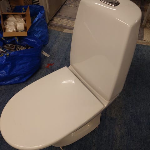 Toaletten är helt ny, aldrig monterad. Endast skålen ingår (ingen sits eller inbyggnadsram).