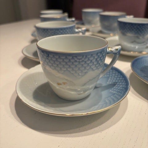 Royal Copenhagen 6 st kaffekoppar med fat i porslin.