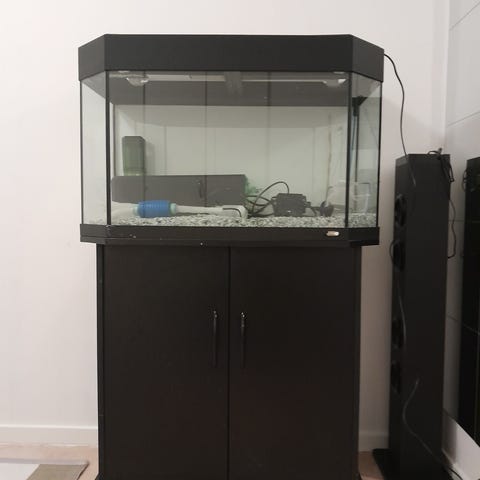 Juwel 180 liter Akvarium med tillhörande skåp och belysning. Fungerar för olika typer av sötvattensfiskar. Används för att hålla och visa upp fiskar och vattenlevande växter/platsväxter.