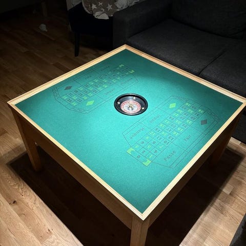 Det finns även ett bord till som måste slipas. Det har legat en vävd duk på som gett avtryck, tyvärr.