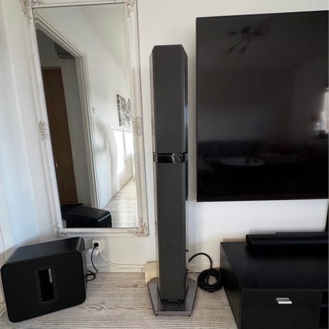 Projektorn är en optoma och har ca 1000 timmar kvar på lampan. Högtalar systemet är dali och förstärkaren är en denon