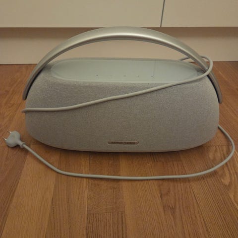 Harman Kardon Go + Play Bluetooth-högtalare i grå färg med handtag för bärbarhet. Utrustad med USB, AUX-ingång och ström/laddning. Uppladdningsbar och super bra ljud. Använt endast ett par gånger, i princip ny.