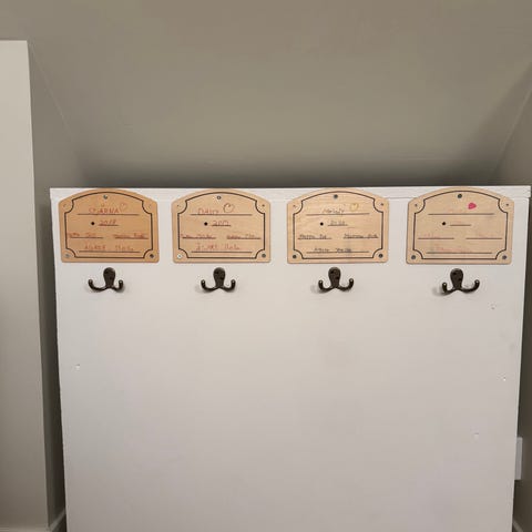 Griffeltavla till varje häst för att skriva namnen.