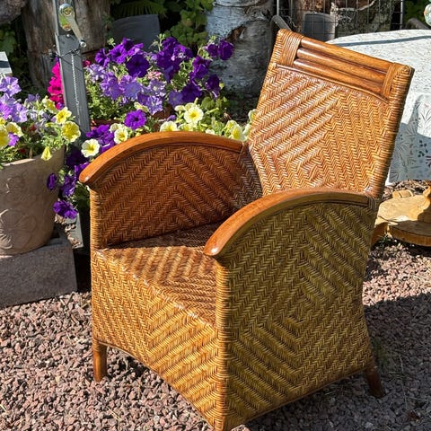 Två st vackra vintage stolar i bambu 1940 tal. Stabila och stadiga i mycket fint skick. Passar fint i hall och uterum.