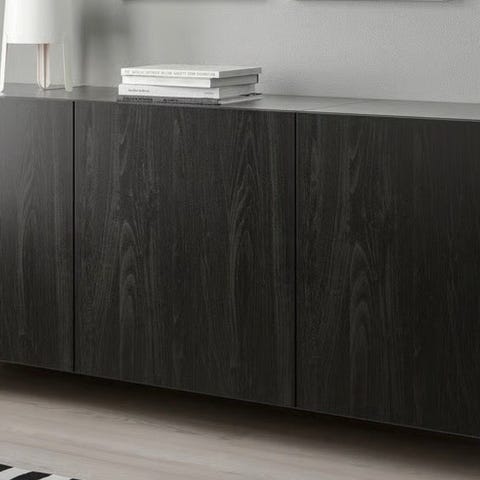 Ikea bestå väggskåp. 4 skåp, 2 med dörr. I svart. Liten skada på ena skåpdörren annars i bra skick.