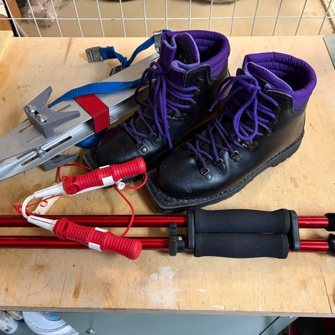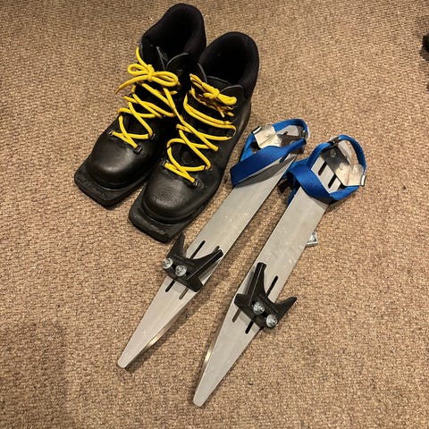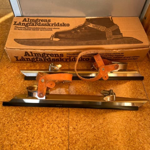 Långfärdsskridskor, pjäxor stl 39, stavar, dubbar