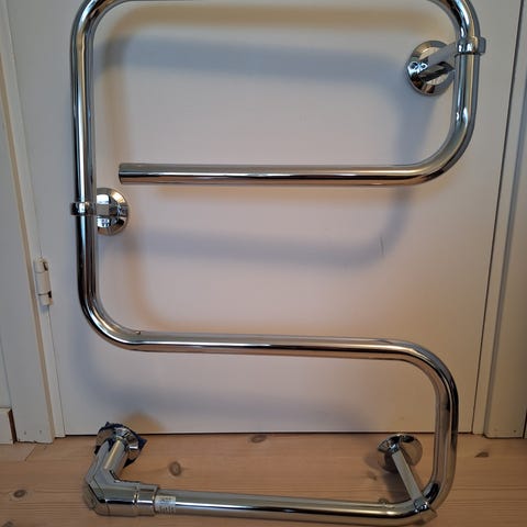 Ny Seaside handdukstork i rostfritt stål. Produkten är avsedd för uppvärmning och torkning av handdukar i badrum. Monteringsinstruktioner medföljer. Mått 44x120cm