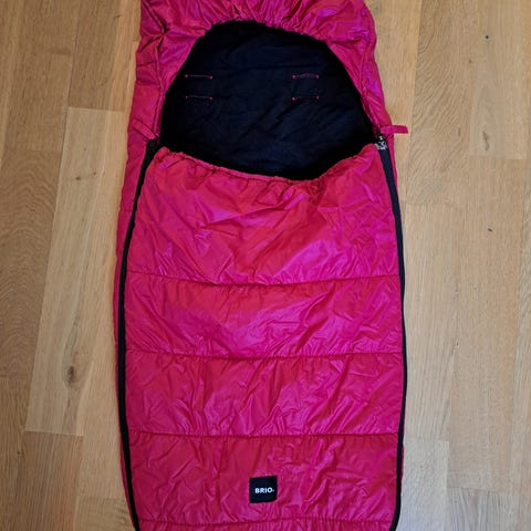 Britax åkpåse i röd och svart färg. Tillverkad för att användas i barnvagnar för att hålla barnet varmt under kallare väder. Åkpåsen har en mjuk insida och är utformad för att passa de flesta barnvagnar.