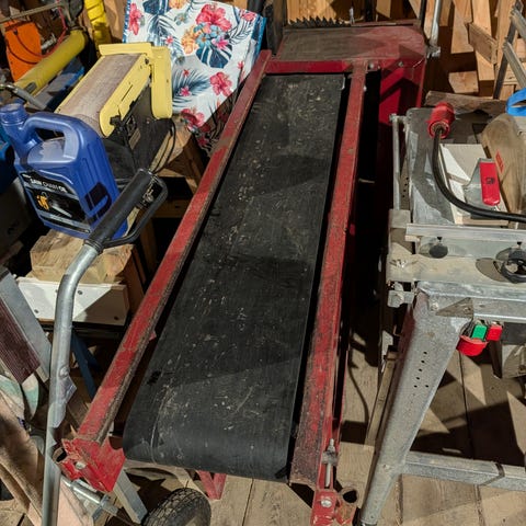 Tysk kvalitetsmaskin för kapning och klyvning med spånutsug. Har använts till nyligen.