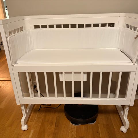 Säljer en bedsidecrib från Troll. Har även delarna till grinden men osäker om man behöver en skruv jag ev saknar, därav låga priset. Kan användas som en bedsidecrib eller barnsoffa.