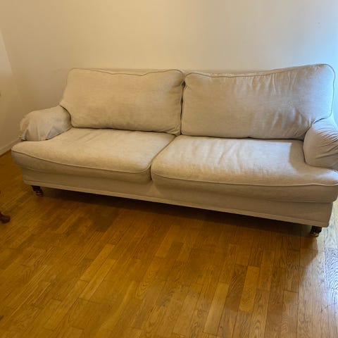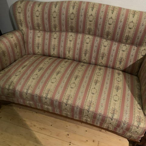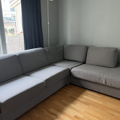 Soffa ok skick, limfläck som inte går bort men dynorna är vändbara. Tyget till dynor avtagbart och tvättbart. Hämtas med fördel i Sundbyberg idag. Schäslongen kan ställas om så att den blir vänsterställd