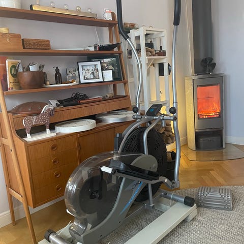 Viking Sport Crosstrainer träningsmaskin med digital display för träningsprogram. Maskinen har pedaler och handtag för helkroppsträning och är avsedd för hemmabruk. Digital manual finns.