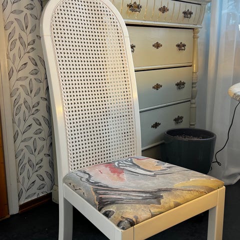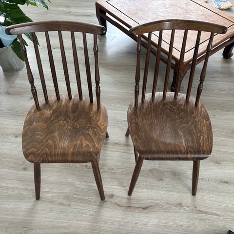 Två fina stolar från Edsbyverken. Den ena stolens ryggstöd vickar lätt och kanske behöver limmas framöver. Annars väldigt fint skick
