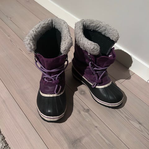 Sorel barnstövlar för unisex i storlek 34. Stövlarna är svarta och designade för att ge skydd och komfort vid användning.
