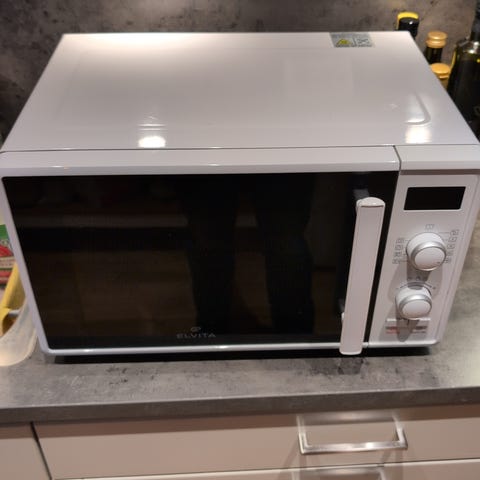 Microvågsugn från Elvita. Nypris 1690 kr. I superfint skick. Stänkskydd ingår.