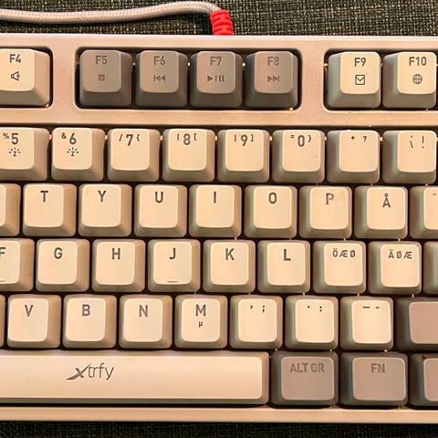 Xtrfy K4 RGB TKL tangentbord med mekaniska tangenter och RGB-belysning. Kompakt design utan numeriskt tangentbord (Tenkeyless). Svart färg med kabelanslutning.