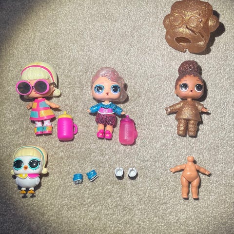 L.O.L. Surprise dockor inklusive tillbehör. Setet innehåller olika dockor med varierande utseenden och färger. Se bild.