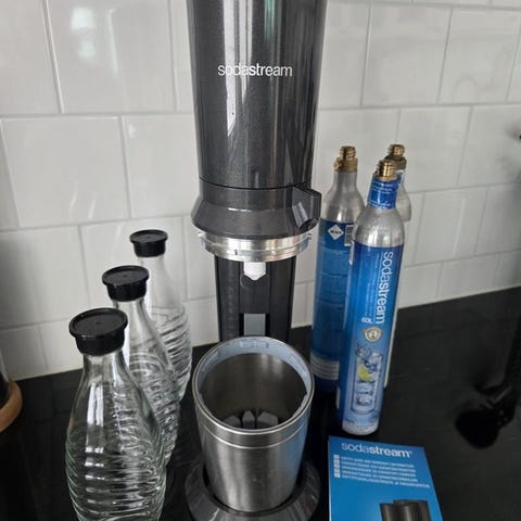 SodaStream Vit kolsyremaskin för att göra kolsyrat vatten hemma. En enkel och kompakt design i vitt material.