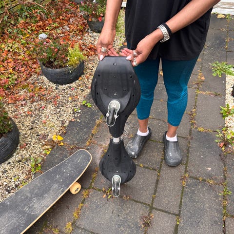 Waveboard i svart färg med medföljande svart bärväska. Används för balans- och rörelseträning samt som transportmedel.