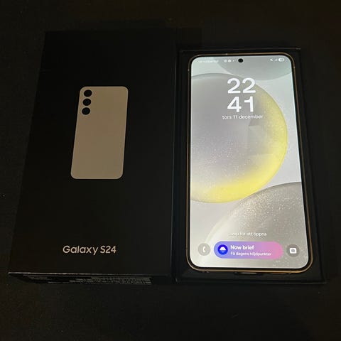 Samsung Galaxy S24 med 128 GB lagring säljes. Telefonen har varit skyddad med lila skins, skal, skärmskydd och kameralinsskydd ända sedan första dagen, vilket gjort att den är i mycket fint och välvårdat skick.