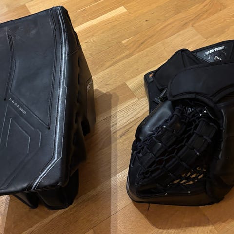 Nu finns chansen att plocka upp riktigt fin målvaktsutrustning i seniorstorlek. Alla delar är väl omhändertagna, spelade på ca 2-3 säsonger – förutom hjälmen som endast är använd 1 säsong. Pro-kvalitet rakt igenom.