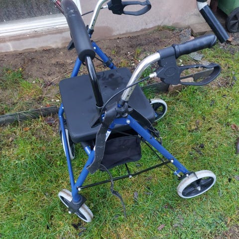 Rullator med sittplats och fyra hjul blå