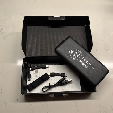 En helt ny grym 10 000mAh powerbank med inbyggda iphone/usb-c sladdar.