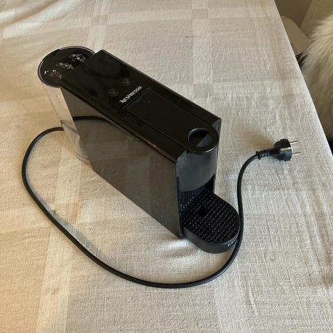 Utrustad med mjölkskummare och vattentank. Medföljer en behållare för använda kapslar.