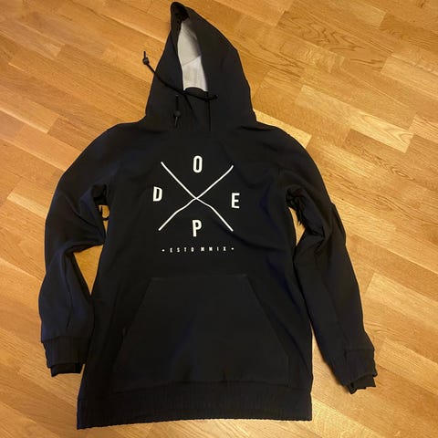 Dope skid/snowboardjacka/hoodie och byxor med vitt och svart mönster. Passar för både män och kvinnor. Byxorna S, jacka S men skulle kunna vara en M