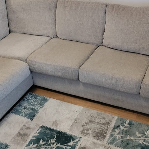Mörkblå tresitsig soffa med divan säljes pga flytt. Säljes i använt skick men den är bekväm och tyget är avtagbart och går att tvätta i tvättmaskin.