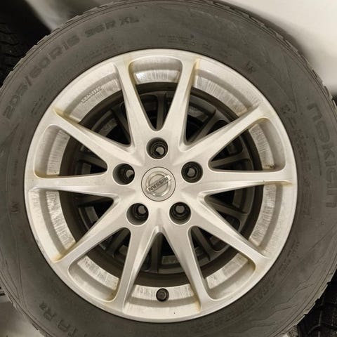 Däcken är av modellen Kumho I’Zen KW31 och fälgarna är Nissan original.