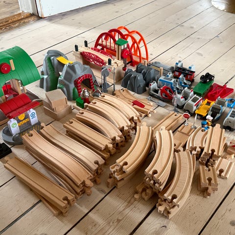 BRIO tågbana i fint skick. Det går att bygga fantastiska banor och landskap med 174st delar.