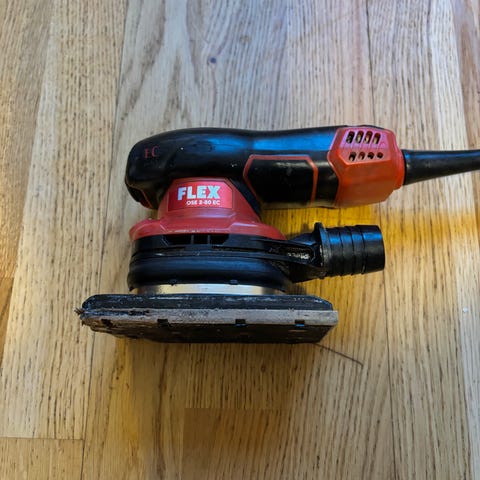 Batteridriven 125mm excenterslip. Använd ett fåtal gånger, allt fungerar som det skall, går att koppla till damsugare. Säljs utan batteri. Går att prova på plats.