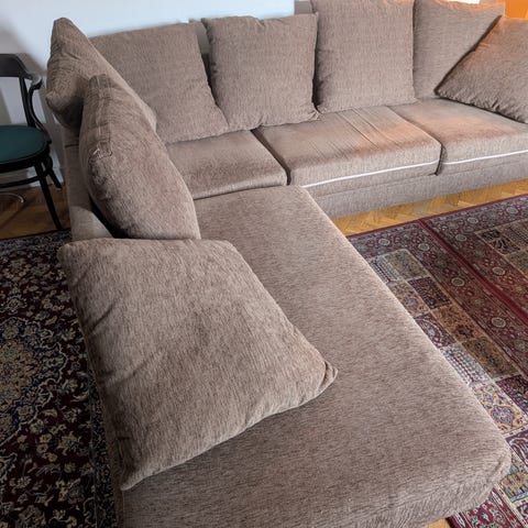 Jättefin soffa från Mio. Ljusbrun, 220x90 cm.