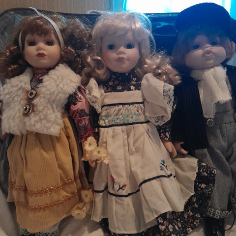 En samling dockor i olika modeller och storlekar. Dockorna har varierande klädstilar och hårfärger. Dessa är köpta på 90 t hämtas I tyresö el kan mötas upp I älta I nacka, fintorp, sickla 50 kr st. Eller alla för 100kr.