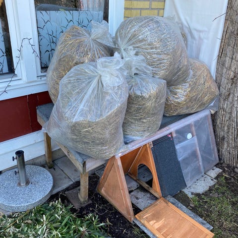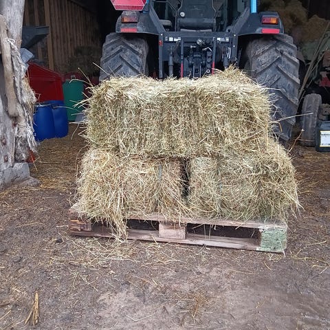 Ordentligt fylld säck med hö 125L säljes för 70kr. Ordentligt fylld säck med havrehalm 125L säljes för 60kr. Bättre pris vid köp av många säckar. Kan köra hem det till er mot ersättning.