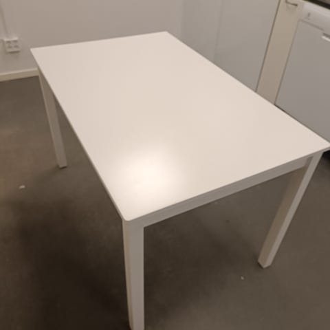 Matbord med vit skiva och bruna ben