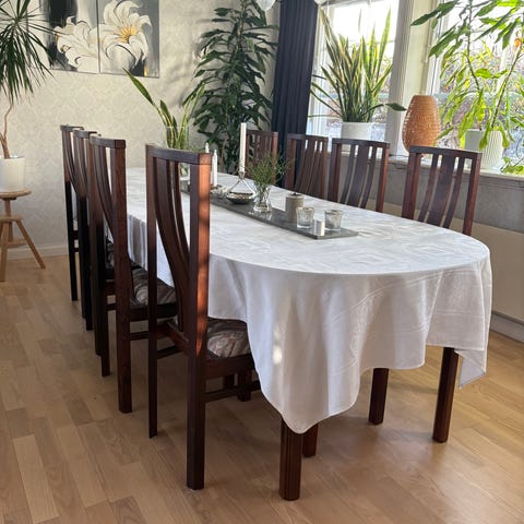 Riktigt fint bord med 6st stolar. Både bordet och stolarna har stålrörsben helt utan rost.