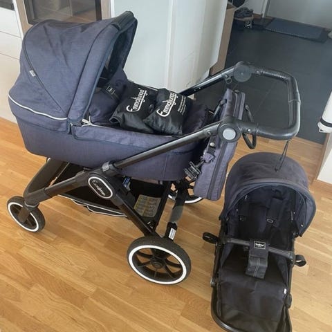 Tillverkad i Sverie. Orginalkvitto samt Emmaljunga myggnät och solskydd (nypris ca 500 kr) ingår.