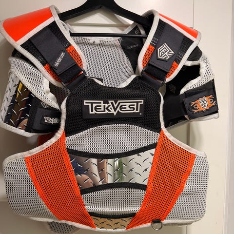 O'Neal motocross skyddsväst och tröja i blå och svart färg. Skyddsvästen är utformad för att ge skydd vid motocross och är i storlek S/M. Tröjan är i storlek S och har lång ärm. Material och övriga specifikationer framgår inte av bilderna.
