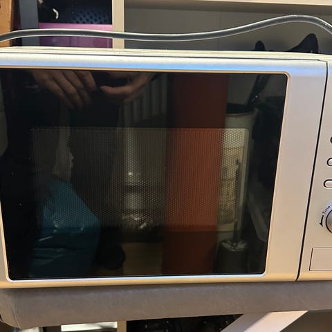 Lite skavanker på dörren som uppkommit i flytt till och från studentlägenhet. Fungerar bra och fyller absolut sin funktion - maten blir varm!