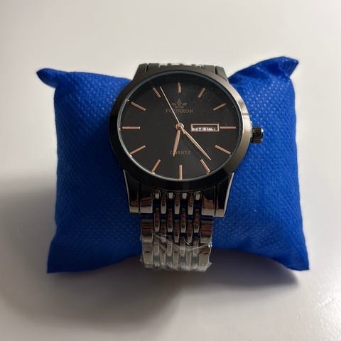 Säljer en stilren Teranv armbandsur. Klockan har ett quartz urverk och en elegant design. Perfekt för både vardag och fest. Boetten är tillverkad i rostfritt stål och armbandet matchar boettens färg. Urtavlan har tydliga markeringar och en datumvisning.