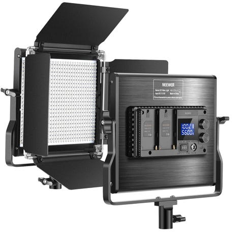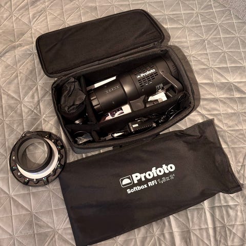 Aputure LED-lampor med bärväska. Setet innehåller tre LED-paneler, 2 fjärrkontroller mm (se bilder). Köptes 5-6 år sedan. Användes ett par gånger och har sedan förvarats i väskan. Mao mycket fint skick. Vänligen observera att ena löparen i dragkedjan har lossnat. Går nog lätt att fixa.
