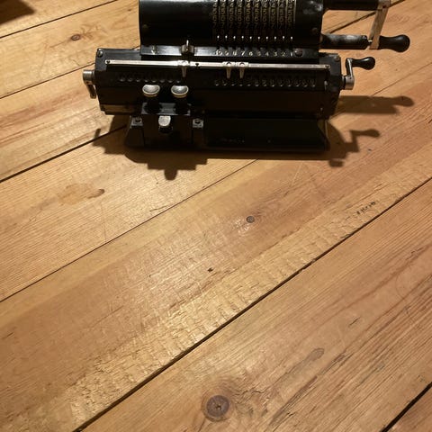 Räknemaskin, "Aktiebolaget Original-Odhner. Göteborg Sverige". På baksidan står No 7 - 188287. På undersidan står M502 ( eller kanske M602) No 5.