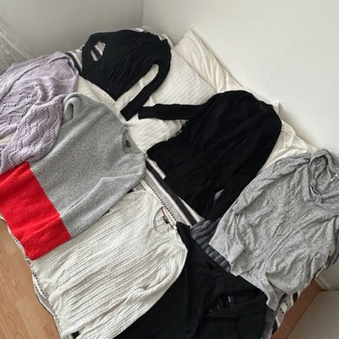 Nyvirkad tröjor i olika storlekar (ca 37-42). Kom gärna och titta på dem och ev prova. Priser från 950:- - 1.100:-. Tröjorna är virkade efter egna idéer och m a o finns endast i dessa exemplar.