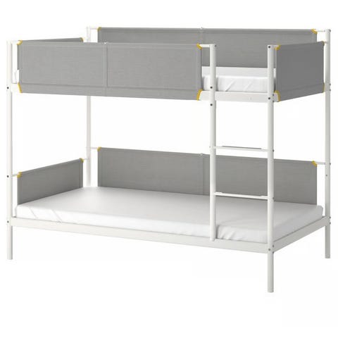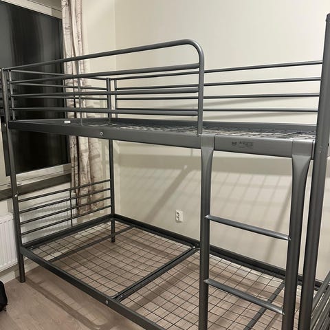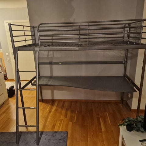 En flexibel våningssäng med ett litet praktiskt skrivbord man kan ha under sängen. Fungerar som ny
