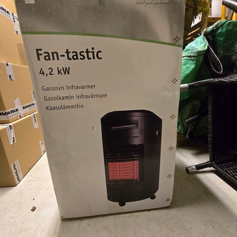 Termo Gas Heater med en effekt på 4,2 kW med tre effekt lägen. Färgen är grå och gasolvärmaren är avsedd för uppvärmning med gas. Dimensionerna är 400x300x730 mm. Används för att värma utrymmen med gasol som bränsle. Kostar 1495 på Bauhaus.