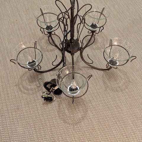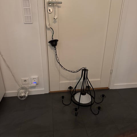 Taklampa med kedja och ljushållare i metall